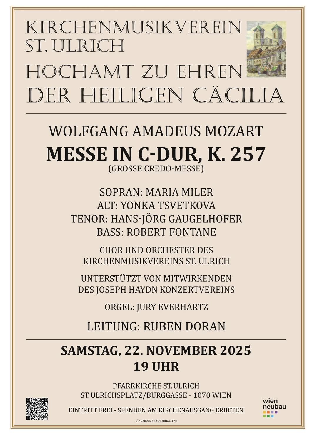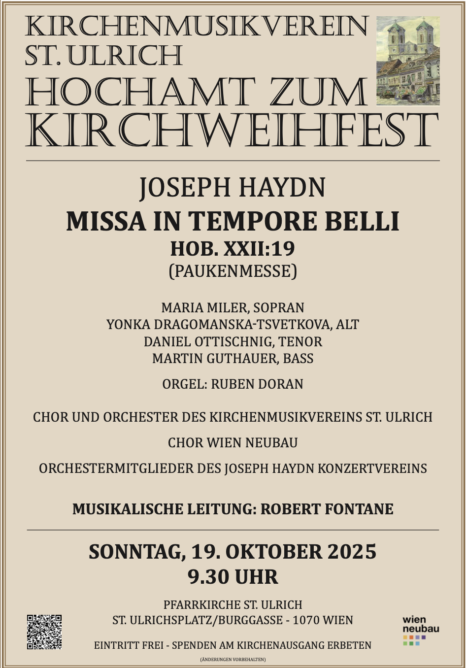 CHOR UND ORCHESTER DES KIRCHENMUSIKVEREINS ST. ULRICH CHOR UND ORCHESTERMITGLIEDER DES JOSEPH HAYDN KONZERTVEREINS MUSIKALISCHE LEITUNG: ROBERT FONTANE