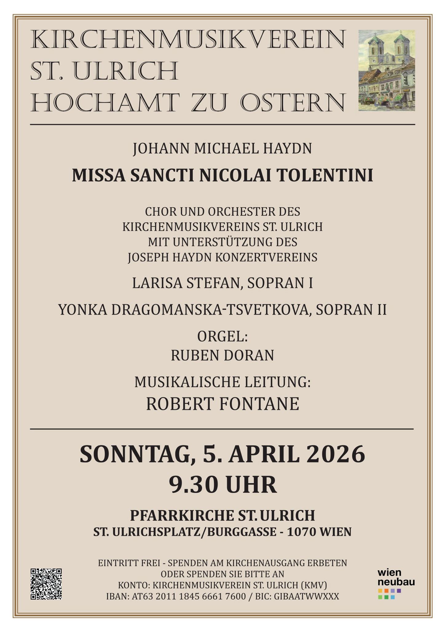 CHOR UND ORCHESTER DES KIRCHENMUSIKVEREINS ST. ULRICH MIT UNTERSTÜTZUNG DES JOSEPH HAYDN KONZERTVEREINS LARISA STEFAN, SOPRAN I YONKA DRAGOMANSKA-TSVETKOVA, SOPRAN II ORGEL: RUBEN DORAN MUSIKALISCHE LEITUNG: ROBERT FONTANE